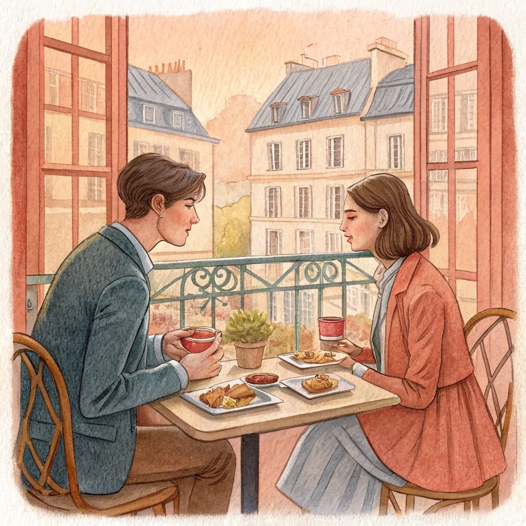 Each dialogue unfolds in seven beats. You don't memorize sentences - you immerse in real French, in context, every day.