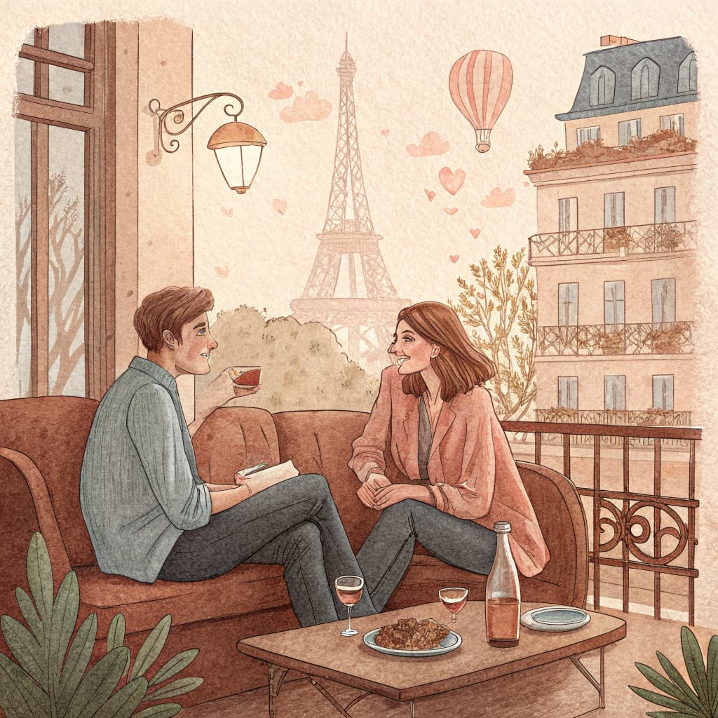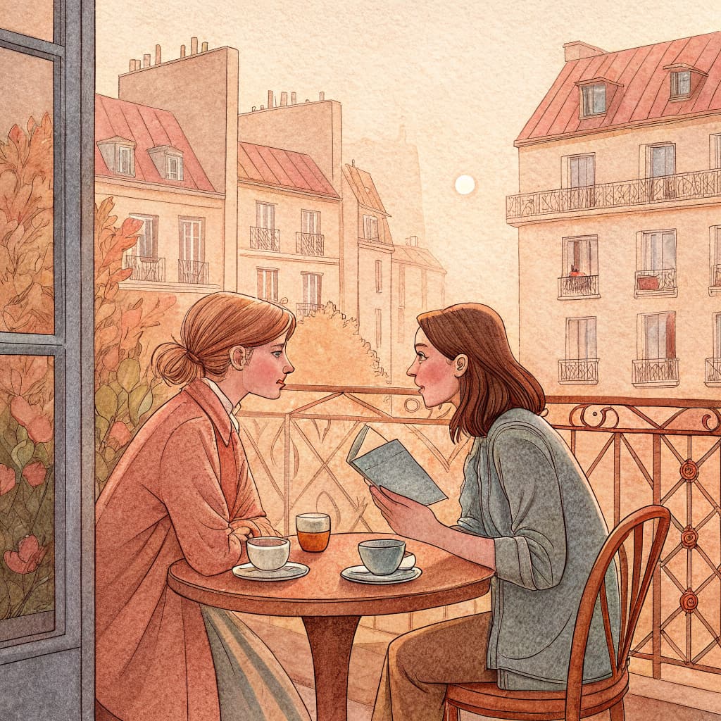Each dialogue unfolds in seven beats. You don't memorize sentences - you immerse in real French, in context, every day.